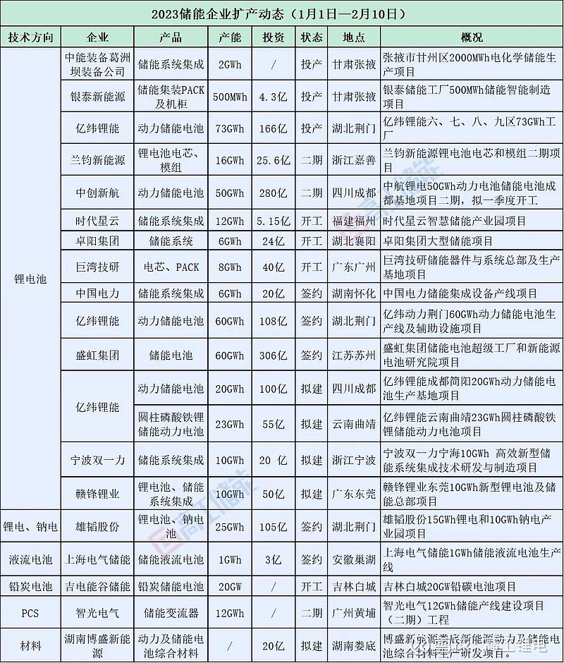 2023開(kāi)年以來(lái),儲(chǔ)能行業(yè)迎來(lái)新一輪擴(kuò)產(chǎn)高峰,擴(kuò)產(chǎn)企業(yè)中,電池企業(yè)和儲(chǔ)能系統(tǒng)集成企業(yè)占比最多。