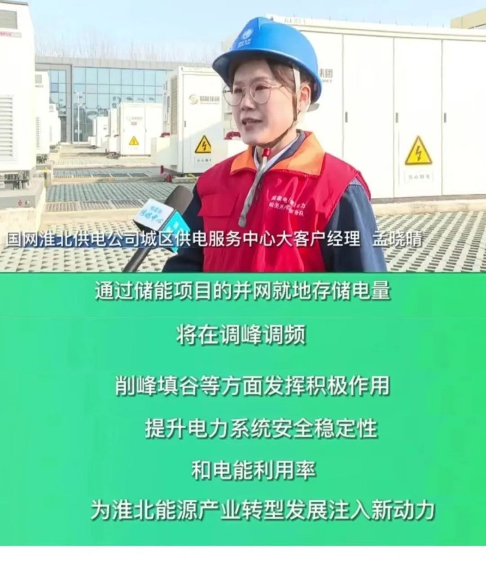 國(guó)網(wǎng)淮北供電公司工作人員在接受淮北市傳媒中心采訪時(shí)表示,通過儲(chǔ)能項(xiàng)目的并網(wǎng)就地存儲(chǔ)電量,將在調(diào)峰調(diào)頻、峰填谷等方面發(fā)揮積極作用,提升電力系統(tǒng)安全穩(wěn)定性和電能利用率,淮北能源產(chǎn)業(yè)轉(zhuǎn)型發(fā)展注入新動(dòng)力。