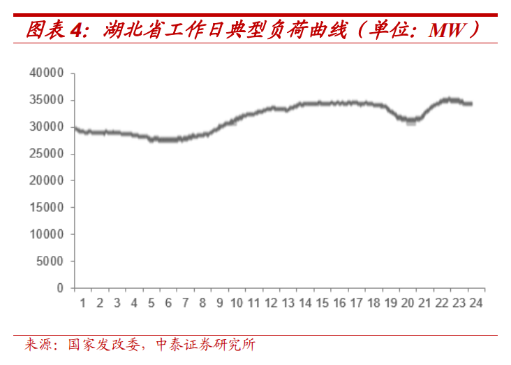 是一天中的最低位。光伏出力曲線和負(fù)荷曲線相對(duì)更適配,白天為曲線高位,但以湖北省為例,20時(shí)至23時(shí)負(fù)荷仍處于相對(duì)高位,而此時(shí)光伏出力為0。因此當(dāng)新能源發(fā)電量占比達(dá)到一定程度,電源和負(fù)荷的曲線差異將對(duì)電網(wǎng)的運(yùn)行效率和安全造成沖擊,或?qū)е麓罅織夛L(fēng)棄光現(xiàn)象。