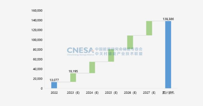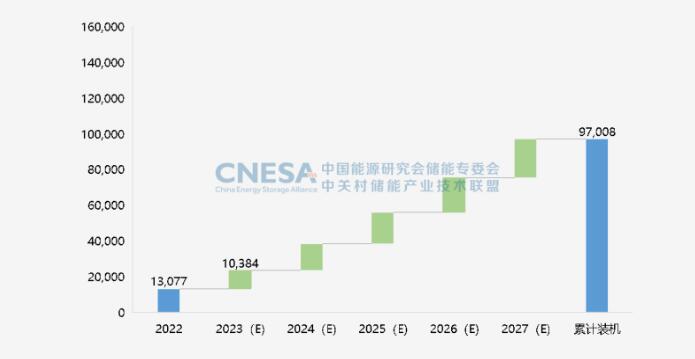 圖6:未來(lái)5年中國(guó)新型儲(chǔ)能累計(jì)投運(yùn)裝機(jī)規(guī)模預(yù)測(cè)(2023-2027年) 單位:MW