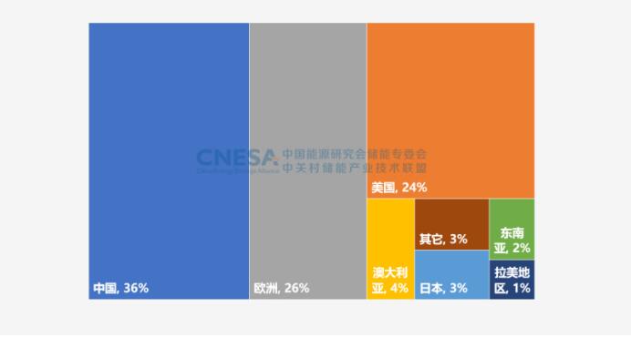 圖3:2022年全球新增投運(yùn)新型儲(chǔ)能項(xiàng)目的地區(qū)分布(MW%)