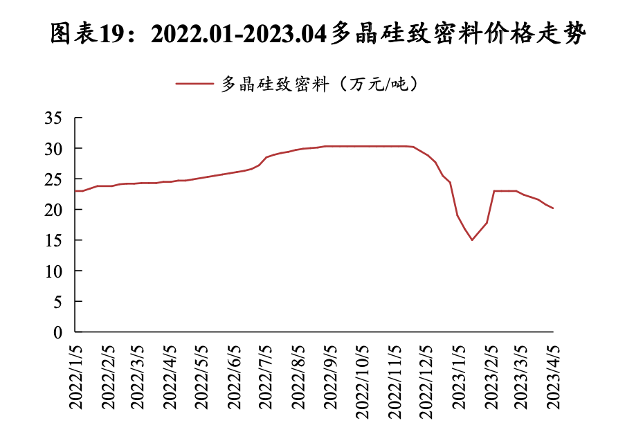 硅料價(jià)格持續(xù)下行,數(shù)據(jù)顯示,多晶硅致密料價(jià)格相較去年高點(diǎn)已接近腰斬。據(jù)集邦新能源網(wǎng)預(yù)計(jì),本月硅料價(jià)格仍將保持下跌態(tài)勢(shì),同時(shí)隨硅片產(chǎn)出持續(xù)大量釋放,價(jià)格有望保持下跌態(tài)勢(shì),電池片價(jià)格也將跟隨下降。