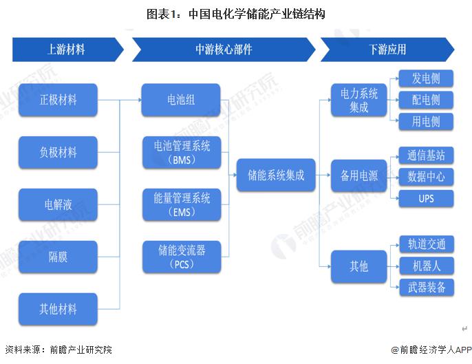 電化學儲能產(chǎn)業(yè)鏈可分為上游材料、中游核心部件制造、下游應用。儲能產(chǎn)業(yè)鏈上游主要為電池原材料,包括正極材料、負極材料、電解液、隔膜以及結構件等。產(chǎn)業(yè)鏈中游主要為儲能系統(tǒng)的集成與制造,對于一個完整的儲能系統(tǒng),一般包括電池組、電池管理系統(tǒng) ( BMS ) 、能量管理系統(tǒng) ( EMS ) 以及儲能變流器 ( PCS ) 四大組成部分。產(chǎn)業(yè)鏈下游主要為不同應用場景的運維服務等,如儲能可用于電力系統(tǒng)的發(fā)電側、輸配電側、用電側,實現(xiàn)調峰調頻、減少棄光棄風、緩解電網(wǎng)阻塞、峰谷價差套利、容量電費管理等功能:其他應用場景還包括通信基站、數(shù)據(jù)中心等的備用電源,以及為機器人系統(tǒng)供電,保障高性能武器裝備的穩(wěn)定運行等。