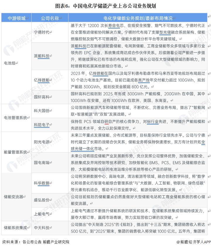 電化學儲能產(chǎn)業(yè)代表性企業(yè)業(yè)務規(guī)劃