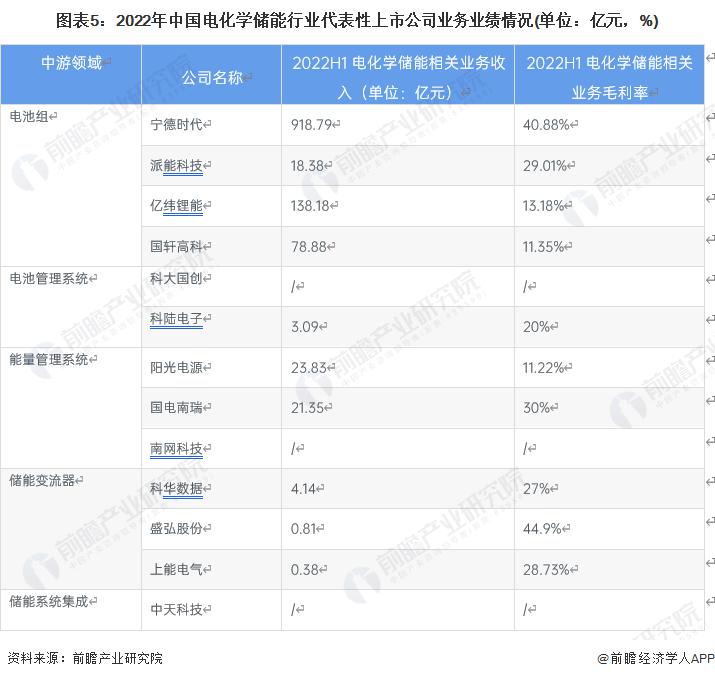 電化學儲能產(chǎn)業(yè)代表性企業(yè)經(jīng)營情況