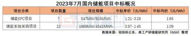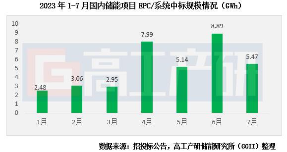 智通財(cái)經(jīng)獲悉,依據(jù)GGII發(fā)布的《高工儲(chǔ)能行業(yè)數(shù)據(jù)庫(kù)》不完全統(tǒng)計(jì),2023年7月國(guó)內(nèi)共有19個(gè)儲(chǔ)能項(xiàng)目EPC/系統(tǒng)公布中標(biāo)結(jié)果,規(guī)模合計(jì)2.44GW/5.47GWh,中標(biāo)數(shù)量和裝機(jī)容量分別較上月下降30%和38%。