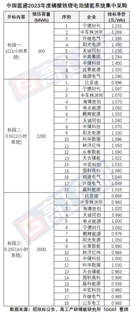 值得關(guān)注的是,7月18日,中國(guó)能建2023年度磷酸鐵鋰電池儲(chǔ)能系統(tǒng)集中采購(gòu)開標(biāo)。本次集采共分為3個(gè)標(biāo)段,總采購(gòu)量3.5GWh,項(xiàng)目主要分布于全國(guó),共有21家儲(chǔ)能企業(yè)入圍。