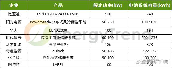 圖:部分工商業(yè)儲能產(chǎn)品梳理