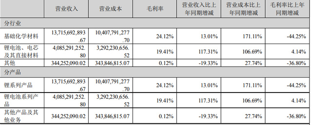 今年上半年,贛鋒鋰業(yè)的鋰電池系列產(chǎn)品營(yíng)業(yè)收入達(dá)到40.85億元,同比增長(zhǎng)117.31%,占比首度突破20%達(dá)到22.5%,毛利率更是增長(zhǎng)了4.14個(gè)百分點(diǎn)到19.41%,成為贛鋒鋰業(yè)唯一實(shí)現(xiàn)毛利率正增長(zhǎng)的業(yè)務(wù)。