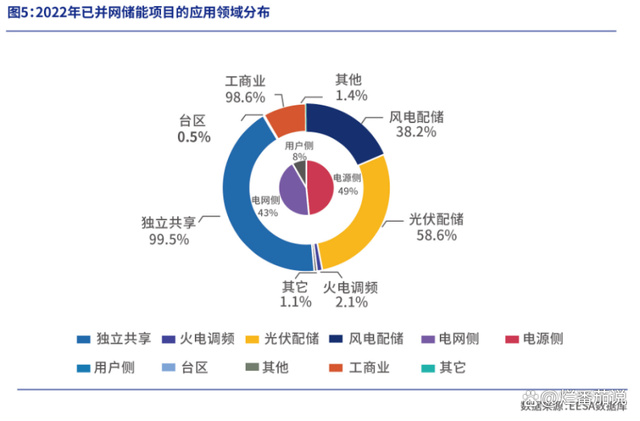 以此來計算,風光配儲項目占2022年已并網(wǎng)儲能項目的比例高達47.4%,規(guī)模比例排第一位。