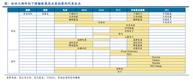 具體來說,儲(chǔ)能系統(tǒng)的核心有“四大件”:電池組、儲(chǔ)能變流器(PCS)、電池管理系統(tǒng)(BMS)、能量管理系統(tǒng)(EMS)等。早期每個(gè)環(huán)節(jié)的核心企業(yè),都能過得不錯(cuò)。但如今,越來越多企業(yè),從單一產(chǎn)品走向系統(tǒng)集成業(yè)務(wù),加大一體化力度,如陽光電源、科陸電子從PCS進(jìn)入系統(tǒng)集成,寧德時(shí)代、億緯鋰能等公司從電池進(jìn)入系統(tǒng)集成。