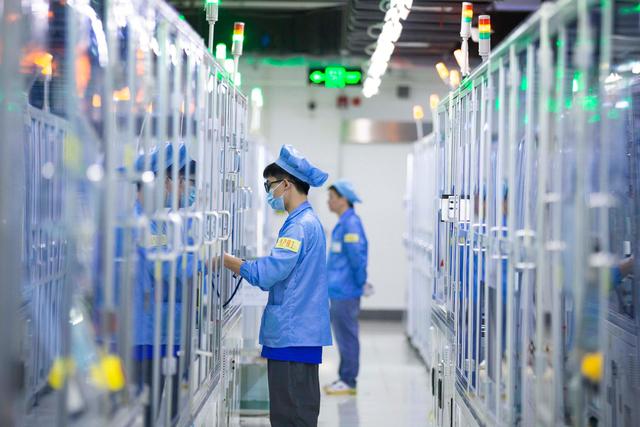 億緯鋰能方形鐵鋰電池模組自動化生產(chǎn)車間。