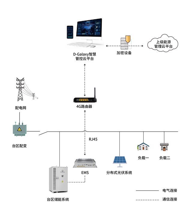 臺區(qū)的儲能系統(tǒng)不是獨立運行的,建立臺區(qū)間互聯(lián)互通的智能運維體系,結(jié)合臺區(qū)負荷特性進行智能化的管理和調(diào)度,才能充分發(fā)揮其在電能治理方面的重要作用。弘正數(shù)字化儲能系統(tǒng)可以實現(xiàn)多個臺區(qū)間互聯(lián)互供,緩解負荷尖峰,均衡負載,提高剩余容量的利用率;同時,通過接入D-Galaxy智慧儲能管控平臺加速臺區(qū)間信息交互及優(yōu)化調(diào)控,實時監(jiān)測電網(wǎng)狀態(tài)和需求,快速響應(yīng)電網(wǎng)變化,完成控制系統(tǒng)能量管理策略和運行模式判斷與切換,增加電力系統(tǒng)靈活性,助力新型電網(wǎng)安全運行。