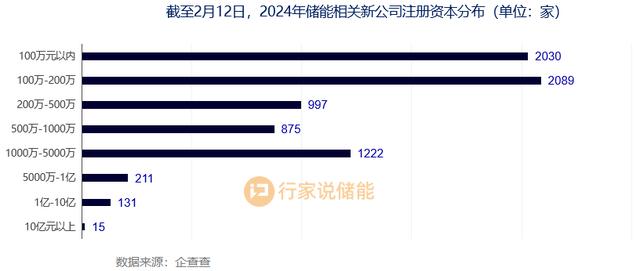 不只是近期密集設立儲能新公司,行家說儲能根據企查查相關數據統計,2024年1月1日-2月12日新注冊的儲能相關企業(yè)7570家,去年同期為3720家,同比增加103.49%。其中,單是1月就有6370家,日均新增205家。