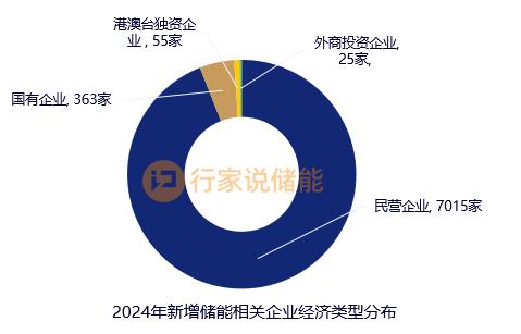 7570家新設儲能公司中,民營企業(yè)7015家,占92.67%,國有企業(yè)363家,港澳臺獨資企業(yè)55家,外商投資企業(yè)25家。