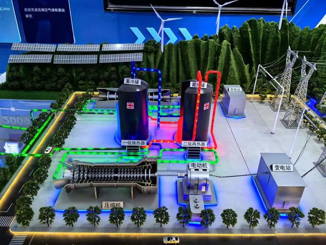據(jù)了解,該電站采用中科院工程熱物理研究所自主研發(fā)、具有完全自主知識產(chǎn)權(quán)的先進壓縮空氣儲能技術(shù),攻克了全工況優(yōu)化設(shè)計、關(guān)鍵部件研發(fā)設(shè)計、系統(tǒng)集成與控制三大核心關(guān)鍵技術(shù),在國際上首次自主研制應(yīng)用300兆瓦系統(tǒng)寬負(fù)荷多級組合式壓縮機、高負(fù)荷多級軸流透平膨脹機和大容量高效緊湊式蓄熱換熱器三大核心部件,效率指標(biāo)均達到國際領(lǐng)先水平。