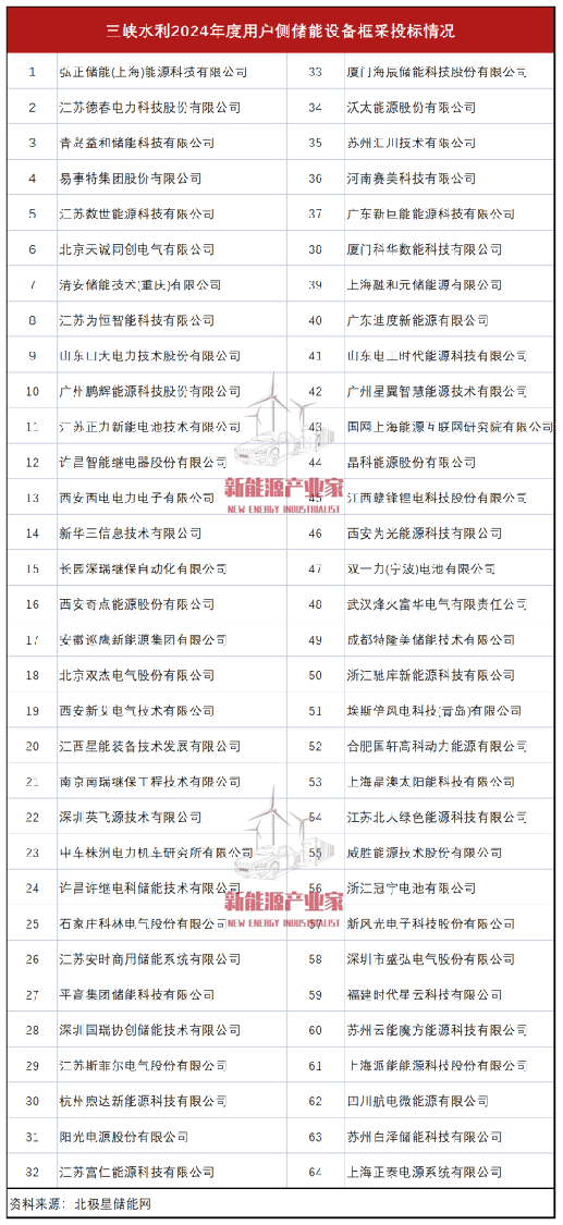 不久前,三峽水利2024年度用戶側(cè)儲能設(shè)備框架協(xié)議采購,總共有64家企業(yè)投標。