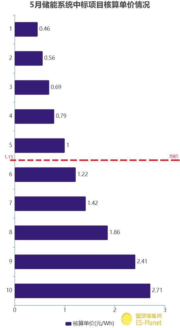 ※ 5月儲能系統(tǒng)中標(biāo)單價情況 來源:星球儲能所
