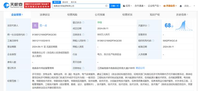 近日,南昌潤(rùn)寧新能源有限公司成立,法定代表人為范一貞,注冊(cè)資本800萬(wàn)人民幣,經(jīng)營(yíng)范圍含工程和技術(shù)研究和試驗(yàn)發(fā)展、新興能源技術(shù)研發(fā)、在線能源計(jì)量技術(shù)研發(fā)、合同能源管理、電池銷售等。股權(quán)全景穿透圖顯示,該公司由時(shí)代綠色能源有限公司全資持股,后者為寧德時(shí)代(300750)全資子公司。