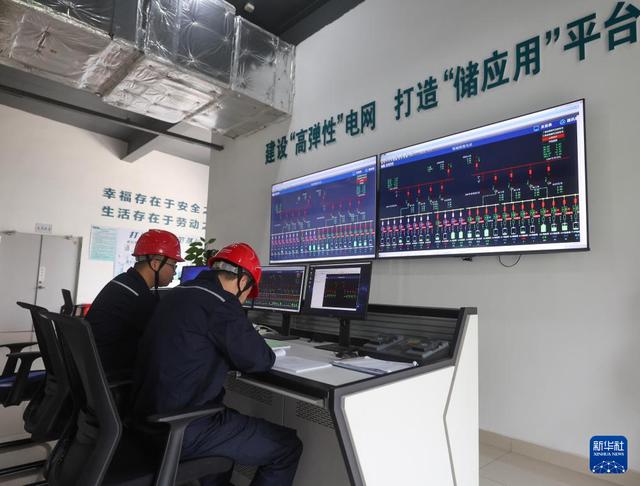 6月13日,在位于浙江省湖州市的長興10千伏雉城電網(wǎng)側(cè)儲(chǔ)能電站控制室,工作人員在查看儲(chǔ)能設(shè)備運(yùn)行情況。