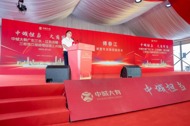 7月1日,中城大有產(chǎn)業(yè)集團(tuán)有限公司(下稱中城大有產(chǎn)業(yè)集團(tuán))在廣東三水、江蘇海陵、浙江諸暨三地舉行了獨(dú)立儲(chǔ)能電站聯(lián)動(dòng)竣工并網(wǎng)儀式。這標(biāo)志著中城大有產(chǎn)業(yè)集團(tuán)在新能源儲(chǔ)能產(chǎn)業(yè)發(fā)展已經(jīng)取得重要階段性成果,為成為儲(chǔ)能生態(tài)行業(yè)領(lǐng)跑者奠定了堅(jiān)實(shí)的項(xiàng)目基礎(chǔ)。來(lái)自三地多位政府領(lǐng)導(dǎo)、業(yè)內(nèi)專家學(xué)者、企業(yè)代表、媒體代表等嘉賓共同見(jiàn)證了這一重要時(shí)刻。