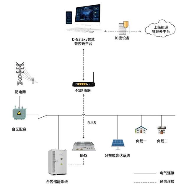 此外,該項(xiàng)目還全面接入了弘正D-Galaxy智慧儲(chǔ)能云平臺(tái),依托三級(jí)EMS架構(gòu)與云邊端協(xié)同體系,加速多個(gè)臺(tái)區(qū)間的信息交互與優(yōu)化調(diào)控。通過(guò)實(shí)時(shí)監(jiān)測(cè)臺(tái)區(qū)配變、分布式光伏和儲(chǔ)能系統(tǒng)運(yùn)行狀況,智能控制系統(tǒng)能夠進(jìn)行能量管理策略與運(yùn)行模式切換、故障自動(dòng)預(yù)警和應(yīng)急處理,有效緩解負(fù)荷尖峰、提高剩余容量的利用率、提升臺(tái)區(qū)運(yùn)維效率,以全生命周期數(shù)字化管理服務(wù)保障臺(tái)區(qū)儲(chǔ)能系統(tǒng)安全穩(wěn)定運(yùn)行。