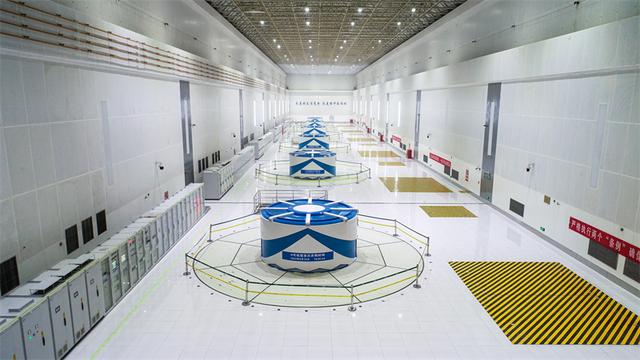 走進文登抽水蓄能電站地下廠房,潔白的大廳內(nèi)6臺機組一字排開,機罩側(cè)面描繪著藍色波濤圖形,象征著文登抽蓄電站這座年輕的電站在新征程上揚帆起航。2023年9月19日,國網(wǎng)新源山東文登抽水蓄能電站最后一臺機組——6號機組正式投入商業(yè)運營,標志著山東省內(nèi)裝機規(guī)模最大、膠東地區(qū)首座抽水蓄能電站全面投產(chǎn)發(fā)電。