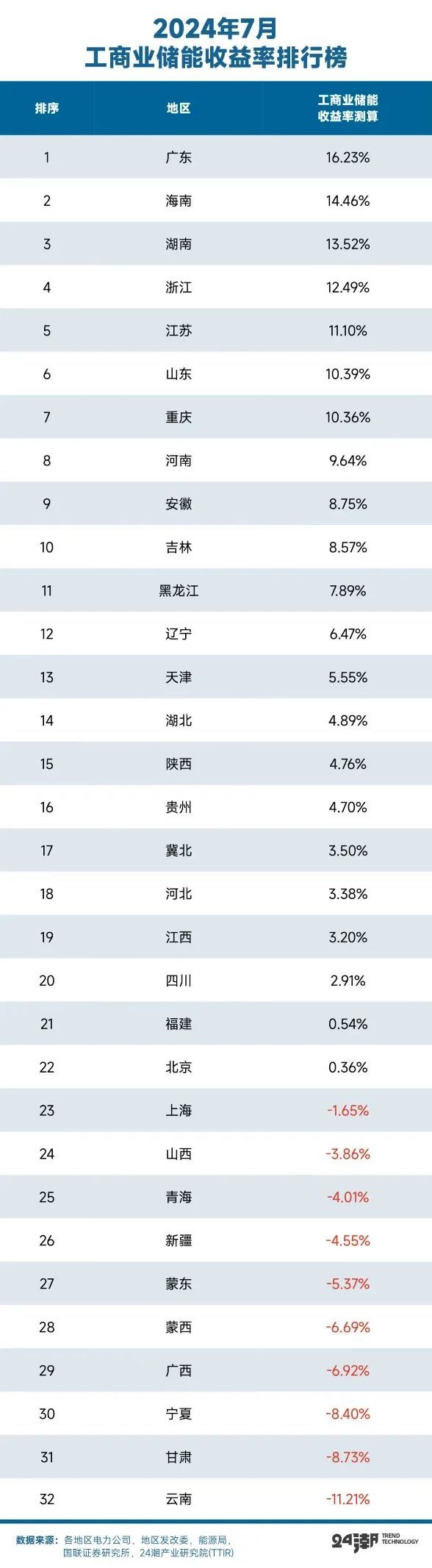 而國聯(lián)證券統(tǒng)計數(shù)據(jù)也顯示,從全國范圍內(nèi)來看,全國共有10個地區(qū)峰谷電價差減小,20個省份峰谷價差擴大,2個省份保持不變。其中工商業(yè)儲能收益率下滑幅度最大的為浙江省,主要原因在于分時電價政策的調(diào)整,6月起浙江不再執(zhí)行尖峰電價,峰谷價差變?yōu)楦叻咫妰r與低谷電價之差,價差下降幅度超20%。