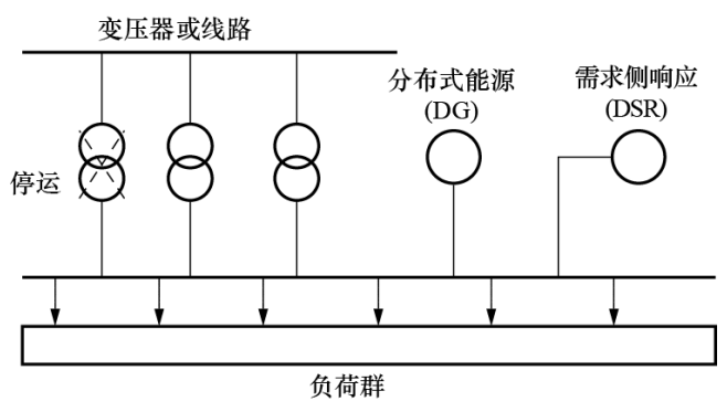 文獻(xiàn)[8]在現(xiàn)有設(shè)計(jì)標(biāo)準(zhǔn)和配電規(guī)劃方法的基礎(chǔ)上,提出了一個(gè)評(píng)估需求側(cè)響應(yīng)(DSR)提高配網(wǎng)安全運(yùn)行能力的新方法:首先隨機(jī)選擇DSR方案的運(yùn)行域,其次用解析法計(jì)算與各方案對(duì)應(yīng)的可靠性指標(biāo),在此基礎(chǔ)上評(píng)估DSR的容量?jī)r(jià)值,最后在滿足可靠性與經(jīng)濟(jì)性要求之間找到一個(gè)折中的解決方案。