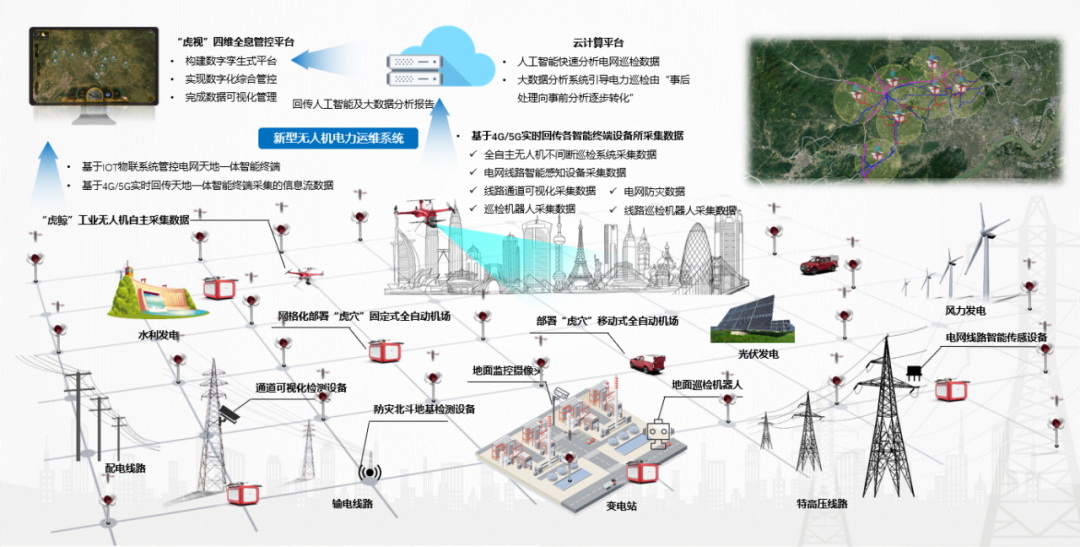 無人機(jī)和全自動機(jī)場聯(lián)動作業(yè),現(xiàn)場無人值守,針對不同任務(wù),無人機(jī)自動掛載相應(yīng)吊艙,自主起飛作業(yè),實現(xiàn)對目標(biāo)的精準(zhǔn)拍攝采集,拍得快、拍得準(zhǔn),拍得清。實現(xiàn)全自主飛行、“畫中畫”指點飛行、仿地飛行等多種作業(yè)模式,提升人機(jī)交互性能,適應(yīng)數(shù)字化運維作業(yè)。