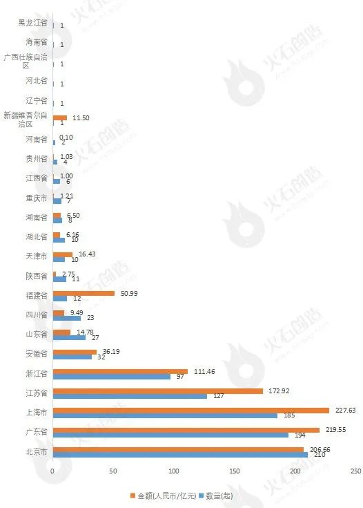 圖3:2022年各地區(qū)融資數(shù)量及金額 來源:火石創(chuàng)造產(chǎn)業(yè)數(shù)據(jù)中心
