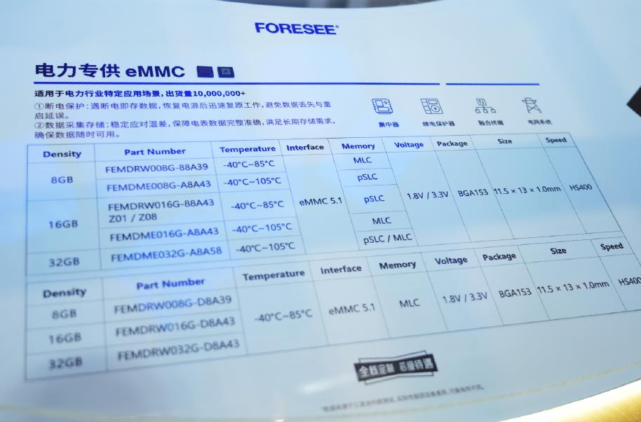 在電力行業(yè),設(shè)備需要采集和處理數(shù)據(jù),同時(shí)還需要記錄和存儲(chǔ)異常信息、警告信息等,因此,在電力設(shè)備中,必須有一種可靠、高效的存儲(chǔ)方式來(lái)確保數(shù)據(jù)的安全性和完整性。為此,江波龍?zhí)貏e設(shè)計(jì)了 FORESEE 電力專用 eMMC,其產(chǎn)品規(guī)格、測(cè)試標(biāo)準(zhǔn)、固件功能均為電力領(lǐng)域量身打造,也是PTM商業(yè)模式在電力行業(yè)的實(shí)踐。該產(chǎn)品系列提供 8GB 至 32GB 的容量選擇,并支持-40℃~85℃以及-40℃~105℃兩種寬溫工作環(huán)境。經(jīng)過(guò)嚴(yán)格的高低溫測(cè)試和多項(xiàng)可靠性驗(yàn)證,產(chǎn)品均展現(xiàn)出卓越的抗沖擊能力,確保在極端溫差下也能穩(wěn)定運(yùn)行,滿足電力行業(yè)在惡劣環(huán)境下的應(yīng)用需求。