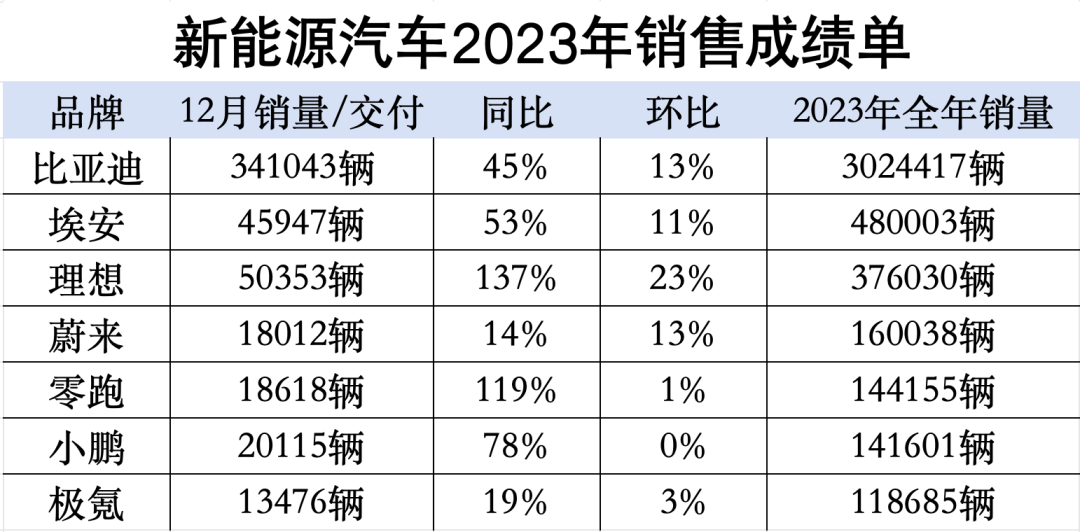 新年第一天,新能源車企紛紛交出2023年成績單,備受市場關(guān)注的中國新能源汽車年度銷量排名隨之揭曉。
