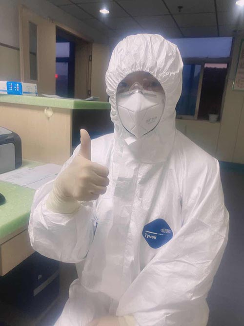 1月28日,負(fù)壓病房因人手不夠,在全院范圍緊急招募志愿者。負(fù)壓病房,需要“全副武裝”,每天和疑似病人近距離接觸,感染風(fēng)險(xiǎn)極大。但受老公經(jīng)常參加搶險(xiǎn)救援戰(zhàn)斗的影響,她多次向領(lǐng)導(dǎo)提出申請(qǐng),并遞交了入黨志愿書,終于獲批“逆行”進(jìn)入最危險(xiǎn)的負(fù)壓病房。接下來的20多天,她每天都要陪著10幾個(gè)病人,認(rèn)真細(xì)致的檢查防護(hù)、登記、測(cè)體溫等等,但確診檢測(cè)是個(gè)比較漫長(zhǎng)的過程,有的病人難免產(chǎn)生焦慮、急躁的情緒,她總是像對(duì)家人一樣做好撫慰,幫助他們共克時(shí)艱。20多天來,她以院為家,克服了各種工作和生活困難,比如在多重防護(hù)服下行動(dòng)不便、呼吸不暢、口干舌燥,累了就倚著墻蹲會(huì),困了就靠著椅背瞇會(huì)??傊瓦@樣神秘的消失在家人的視線中,有時(shí)連報(bào)個(gè)平安的電話都沒空打。