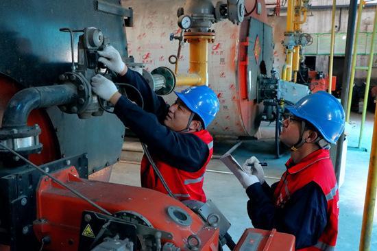 國(guó)網(wǎng)無(wú)極縣供電公司工作人員到鑫光熱力有限公司檢查供暖用電設(shè)備。程曉坤攝