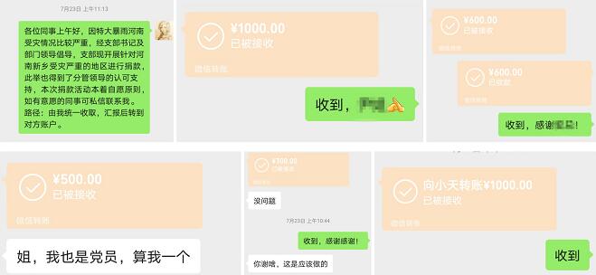 據(jù)悉,河南遭遇特大暴雨,多地發(fā)生嚴重洪澇災害。河南省輝縣市常村鎮(zhèn)氈匠屯村遭受洪澇災害,農(nóng)作物受災,經(jīng)濟受損,村民們生活與人身安全受到影響。這些天,國網(wǎng)信通產(chǎn)業(yè)集團國電通規(guī)劃與計劃管理業(yè)務事業(yè)部黨支部黨員們每天都留意新聞報道,關注河南災情,希望能為河南做點什么。得知輝縣市常村鎮(zhèn)氈匠屯村受災情況后,迅速響應,通過河南籍員工與當?shù)攸h組織取得聯(lián)系,發(fā)出捐款倡議。倡議一經(jīng)發(fā)出,便得到了黨支部黨員、發(fā)展對象和員工的積極參與,迅速募捐到了11800元善款。在輝縣市常村鎮(zhèn)氈匠屯村遭受洪災的關鍵時刻,迅速將善款打給他們,為當?shù)匕傩仗峁┰?/p>