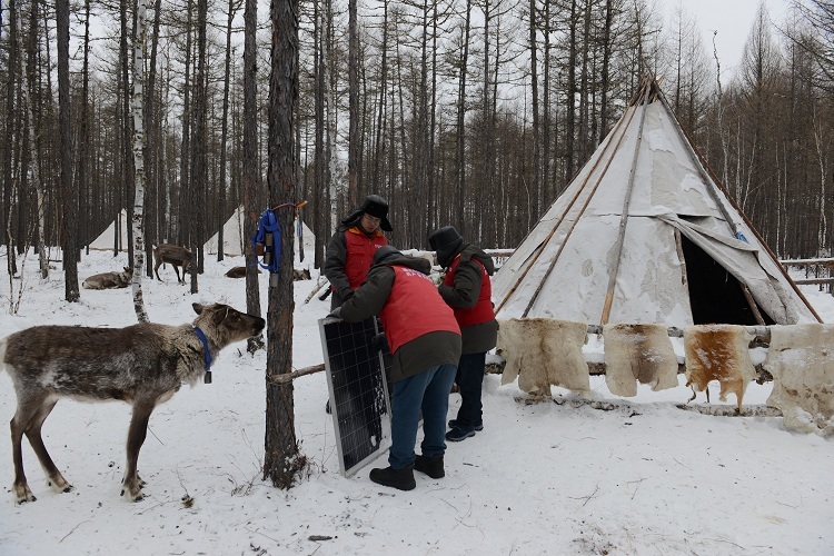 大興安嶺的冬季,遠山覆蓋著白雪,天空仍飄落著零星的雪花。山風颯颯地吹著,白云緩緩地飄著,鹿角在白雪皚皚的森林中時隱時現,悅耳的鹿鈴在遠遠近近的時空里叮叮當當響個不停,一群馴鹿盡情地奔跑在森林中,遠處撮羅子里升起裊裊的炊煙,國網根河市供電公司共產黨員服務隊一行來到了布冬霞馴鹿放養(yǎng)點,到達目的地后,他們立即操作起來,對光伏發(fā)電板進行耐心細致檢查并接通電路,高高懸掛的紅燈籠在皚皚白雪中顯得格外吉祥。