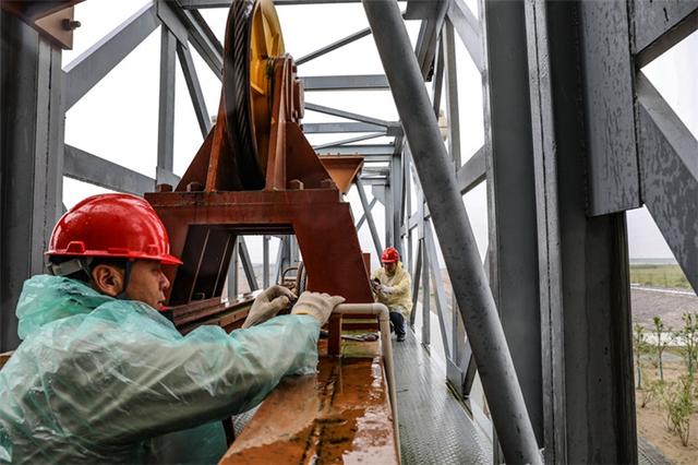 國網(wǎng)江蘇南通供電公司員工冒雨檢查閘口用電設備,確保安全運行。