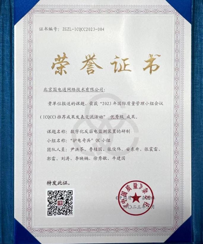 國網(wǎng)信產(chǎn)國電通“護電奇兵”QC小組成果獲國際質(zhì)量管理小組優(yōu)秀獎