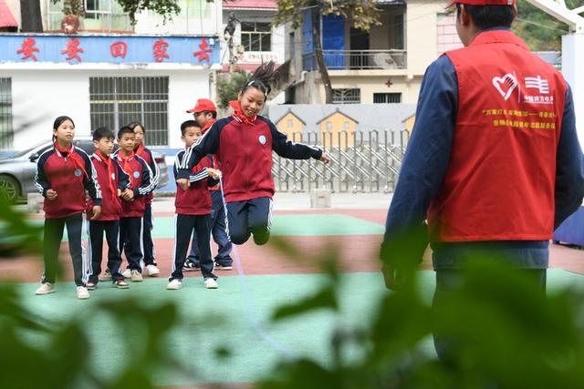 志愿者在陪洛麥小學的學生做游戲。龍定錦攝