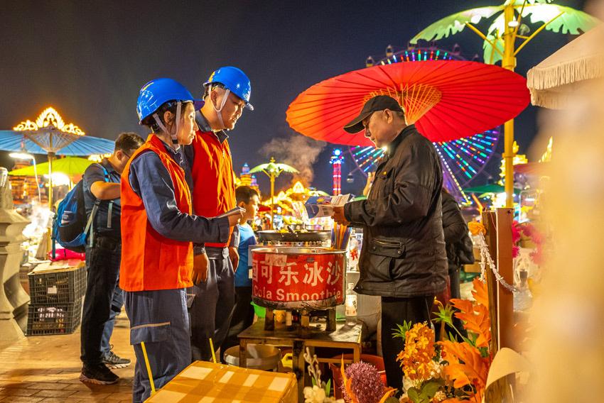 西雙版納供電局營銷人員對告莊景區(qū)商戶開展安全用電宣傳。任軍攝