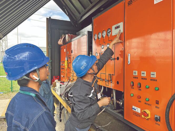“更換過程中,為了保證舊斷路器不受潮,我們?cè)诓鹣碌奶坠芗氨倔w氣室內(nèi)及時(shí)充入高純氮?dú)獠⑥D(zhuǎn)移存放。在支架及本體就位后,套管要在環(huán)境滿足條件的情況下才能進(jìn)行安裝。”國網(wǎng)甘肅超高壓公司變電檢修中心變電一次檢修五班班長邵建軍說。檢修人員在保證新斷路器安裝質(zhì)量的同時(shí),還要開展六氟化硫氣體微水及組分檢測(cè)、斷路器常規(guī)試驗(yàn)和耐壓試驗(yàn)等一系列工作,確保斷路器更換質(zhì)量合格。