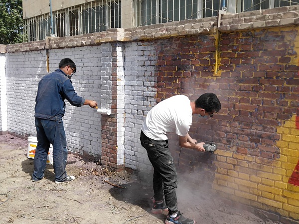 烈日當頭,33℃的高溫絲毫沒有影響到大家干活的熱情。修繕路基的男生們和著水泥、手拿磚塊堆砌出一條筆直的長線;清理墻面的男生也不甘示弱拿著鋼絲刷,拎著裝滿油漆的白桶、滾筒刷來到圍墻外清理墻面;打掃庭院的女孩們拿著手中的勞動工具攀高爬下、忙忙碌碌。到了午休時分,為保質保量完成任務,張志龍,作為墻面清理負責人的他,選擇獨自留下,汗水一遍又一遍打濕他身穿的工作服,各色的粉塵混合著白色的油漆落在他的身上。他說:“今天雖然很累很辛苦,但看到俺們自己的勞動成果,能給大家創(chuàng)造好的環(huán)境,我覺得很有意義”。言辭之間,他充滿著自豪和快樂。直到晚上快十點,完成門口的墻面粉刷任務,幾個人才帶著一身的泥土回家吃飯。