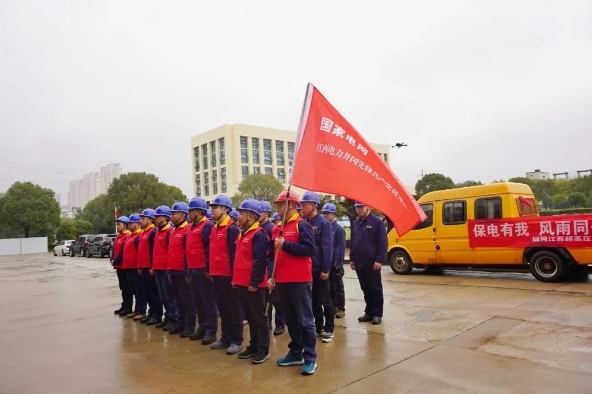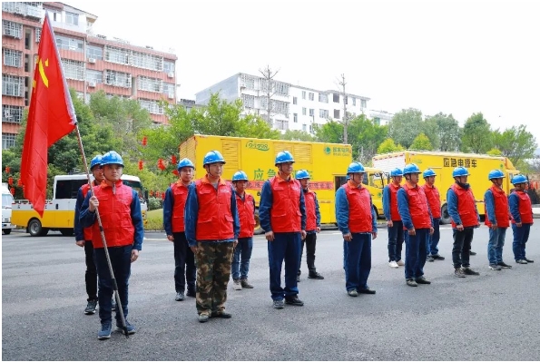 ▲國(guó)網(wǎng)宜春供電公司馳援隊(duì)伍出征。易洪/攝
