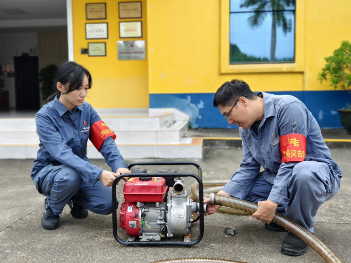 臺風(fēng)來臨前,南網(wǎng)超高壓公司南寧變電站值守人員開展應(yīng)急裝備檢查試驗。宋名曄 攝
