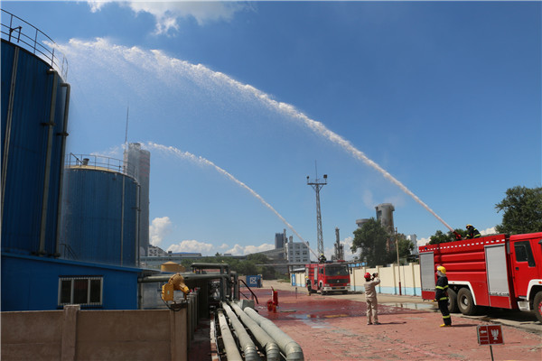 消防隊(duì)接到報(bào)警后立即出動消防車趕往火災(zāi)現(xiàn)場進(jìn)行滅火,同時(shí)聯(lián)系化廠消防隊(duì)支援。各應(yīng)急組到達(dá)現(xiàn)場后,緊張有序的開展應(yīng)急救援。經(jīng)過協(xié)同作戰(zhàn),燃油罐區(qū)明火已經(jīng)撲滅,消防人員正在清理現(xiàn)場,防止復(fù)燃,無其他設(shè)備、人員不安全事件。至此演練結(jié)束,高金鍇宣布應(yīng)急響應(yīng)結(jié)束,關(guān)閉應(yīng)急預(yù)案。