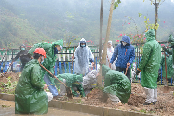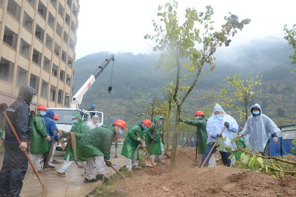 植樹前,該公司向參加活動員工發(fā)起了“踐行環(huán)保理念,爭當(dāng)‘綠色播種者’”的活動倡議,號召員工在活動中踐行愛崗敬業(yè)、愛廠如家的精神,播種希望、靜待花開。隨后,植樹活動正式開始。