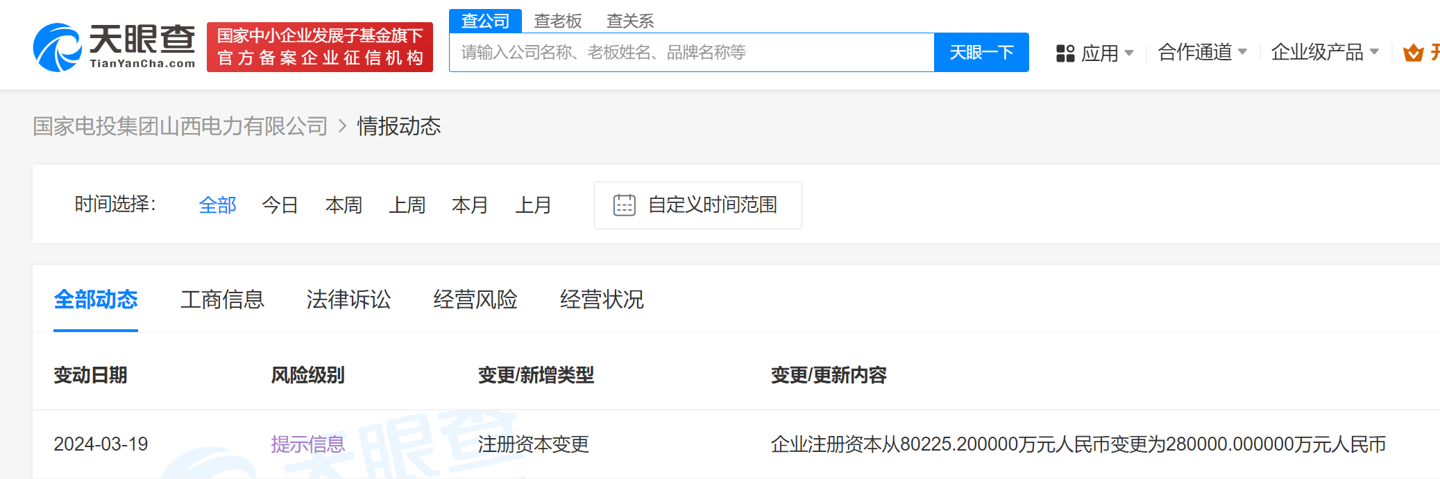 近日,國家電投集團山西電力有限公司發(fā)生工商變更,注冊資本由約8.02億人民幣增至28億人民幣。該公司成立于2017年7月,法定代表人為周棟,經(jīng)營范圍含電力業(yè)務(wù),電力供應(yīng),熱力的開發(fā)建設(shè)、經(jīng)營、生產(chǎn)及管理等。股東信息顯示,該公司由中國電力國際發(fā)展有限公司全資持股。