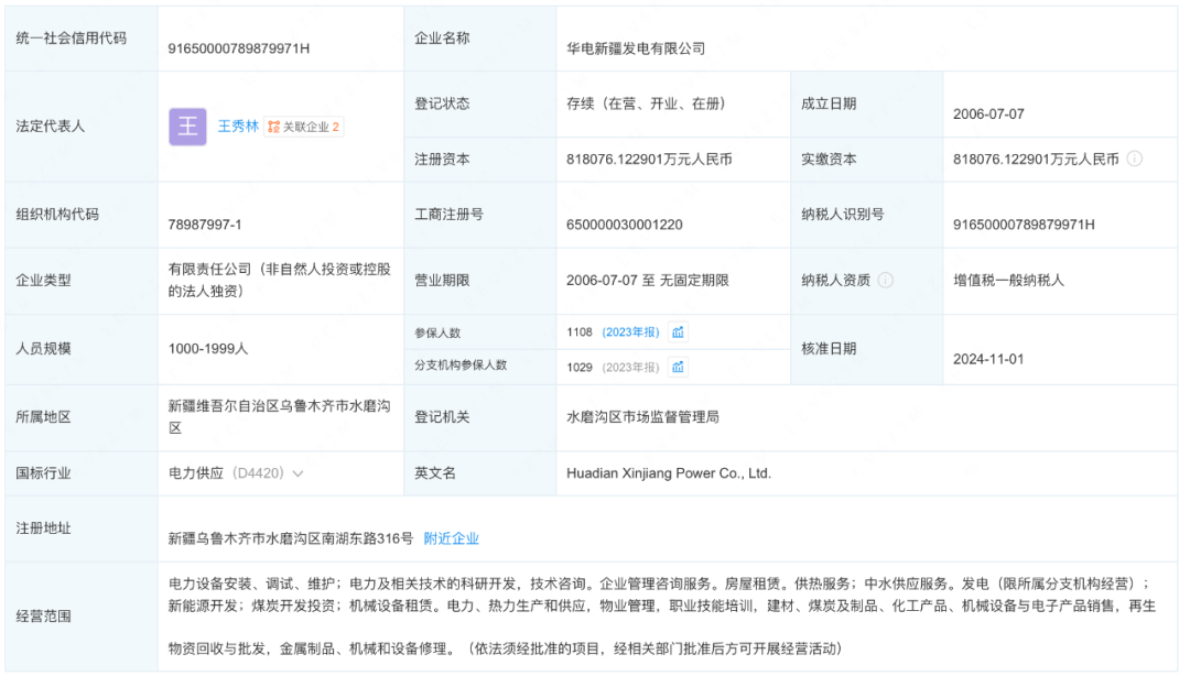 華電新疆發(fā)電有限公司成立于2006年7月,經(jīng)營范圍含電力設(shè)備安裝、調(diào)試、維護(hù),電力及相關(guān)技術(shù)的科研開發(fā),技術(shù)咨詢等,由中國華電集團(tuán)有限公司全資持股。