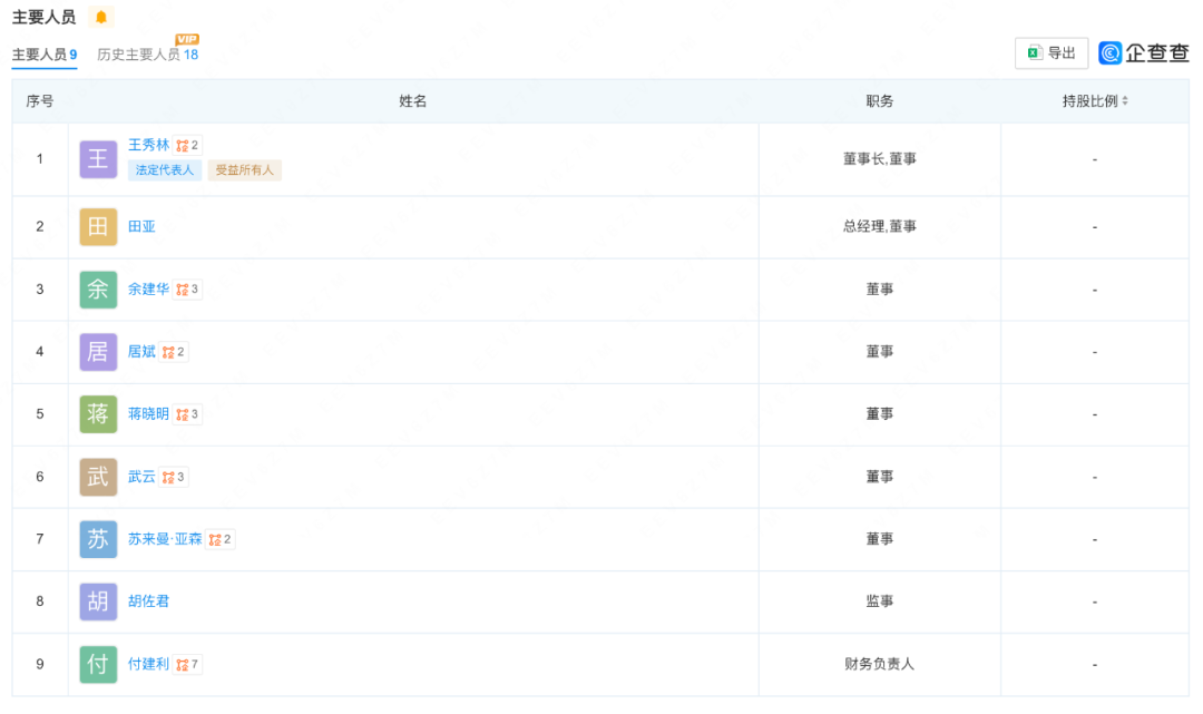 根據(jù)企查查顯示,含董事長、總經(jīng)理在內(nèi)共6位高層卸任。目前,主要領(lǐng)導(dǎo)為9人。其中,王秀林任董事長、田亞任總經(jīng)理。